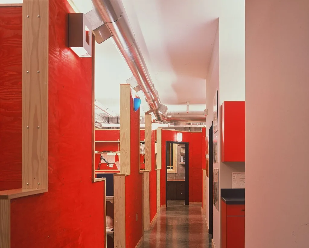 Designed and built by the firm, the project reflects a practical, long-term approach to creating an efficient, flexible office environment that fits comfortably within its setting. The sloping site played a key role in shaping the design, with the building nestled into the hillside to minimize site disruption while maintaining access and visibility.