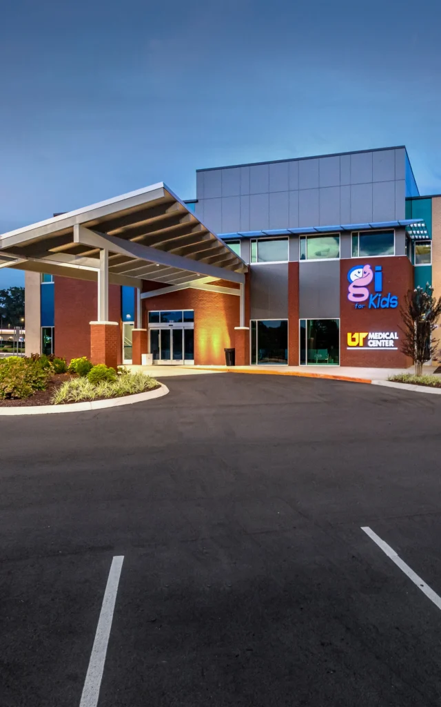 The GI for Kids medical building was designed to replace an inefficient, fragmented medical office with an intentional facility built around pediatric care, the family experience, and improved operational flow. The project brought the practice together under one well-organized building, with additional office space for UT Medical Center located on the second floor.