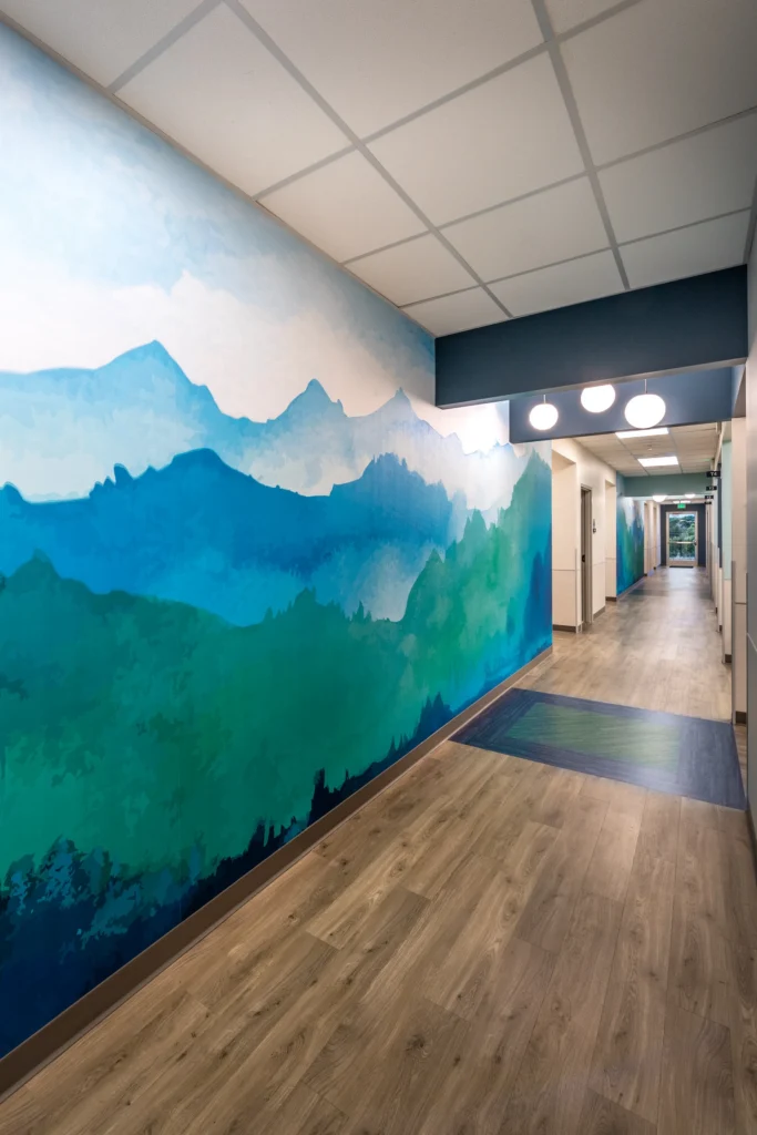 That same approachability extends to the exterior, where the use of color and material softens the building’s presence and helps create a healthcare environment that feels welcoming rather than intimidating for kids and families.