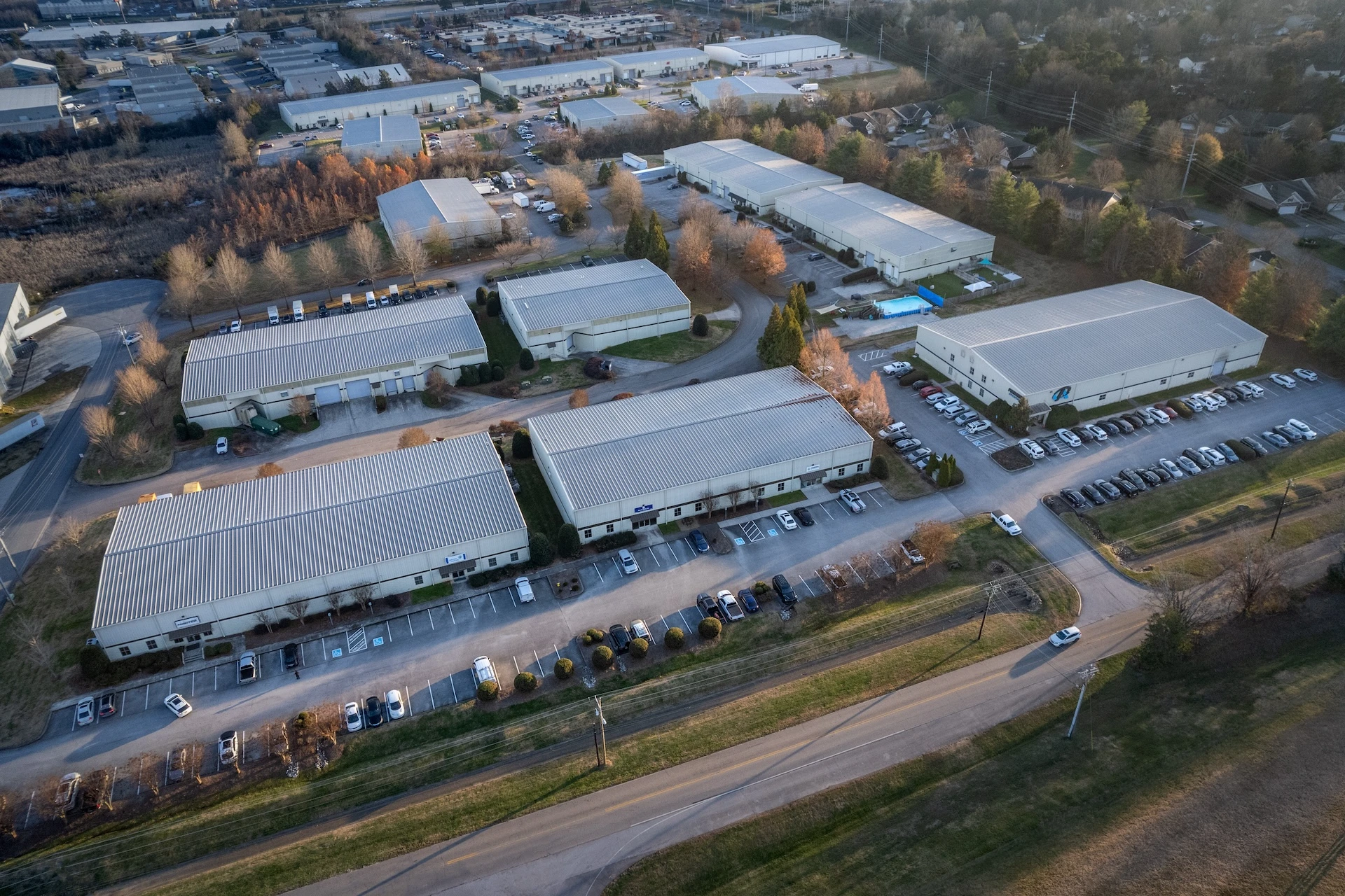 The buildings share a consistent architectural language, helping the development read as a unified industrial park rather than a collection of separate structures. This park reached full occupancy in a short period of time, allowing the owner to move forward with additional developments at other locations.