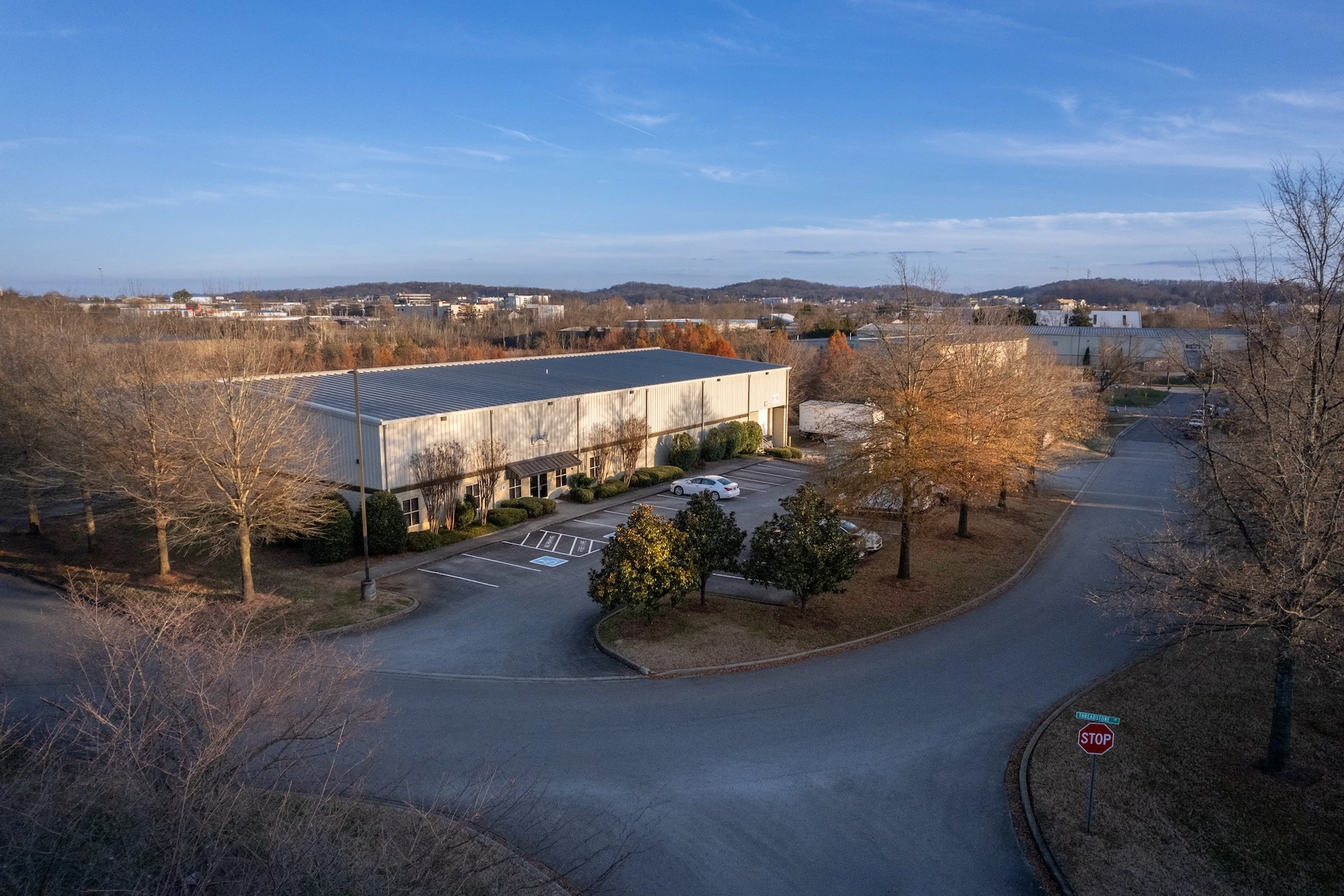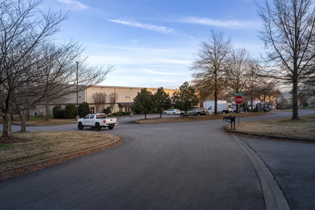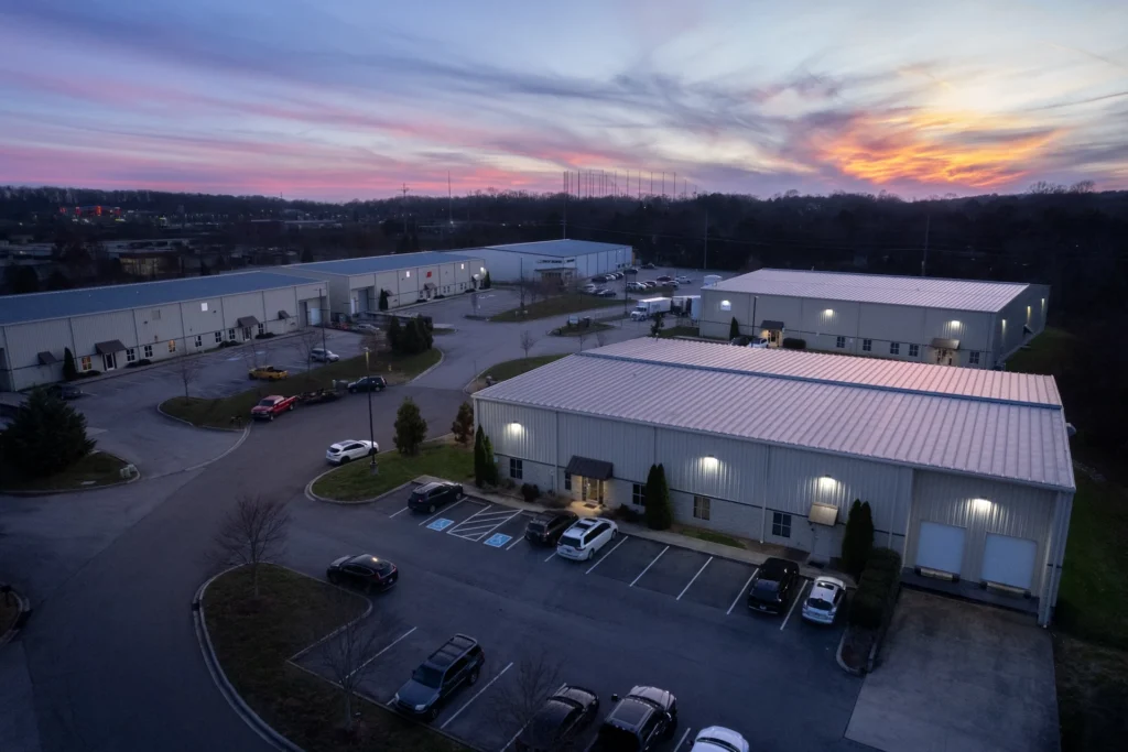 Lovell Springs Business Park is a 15-building industrial development located in West Knox County. Building sizes range from 7,500 to 30,000 sq ft, offering flexible space options within a single industrial park. The site is bounded by a tributary of Turkey Creek and TVA power lines, creating clear constraints that informed the overall planning of the development.