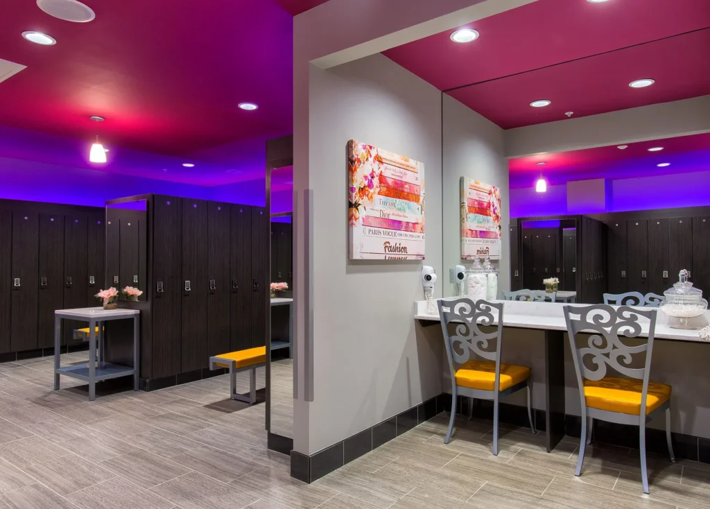 The building was envisioned as a temple to health and fitness, expressed through a classical, columned exterior that allows ample natural light and views of the surrounding hills. A dramatic two-story entry rotunda serves as the primary point of arrival and organization, connecting members to the club’s varied programs.