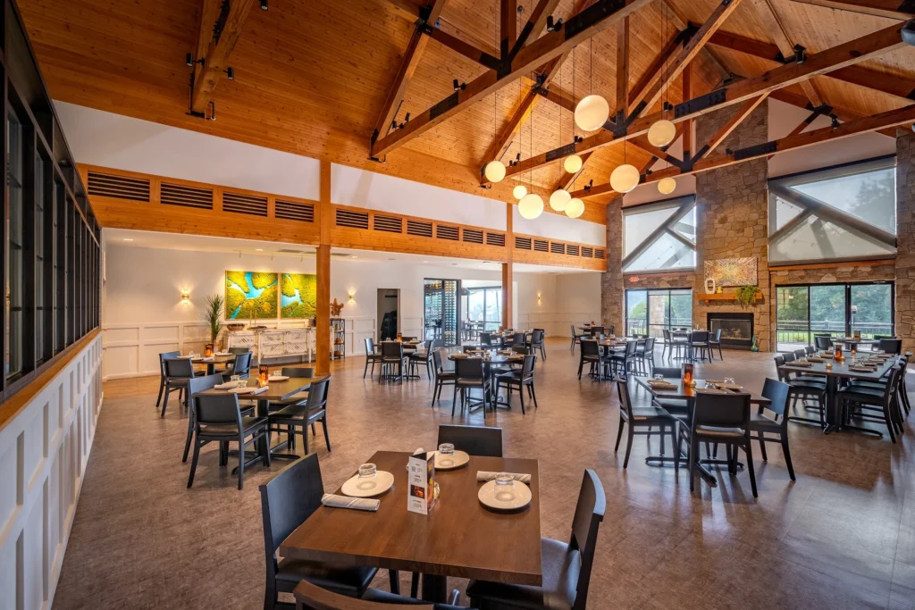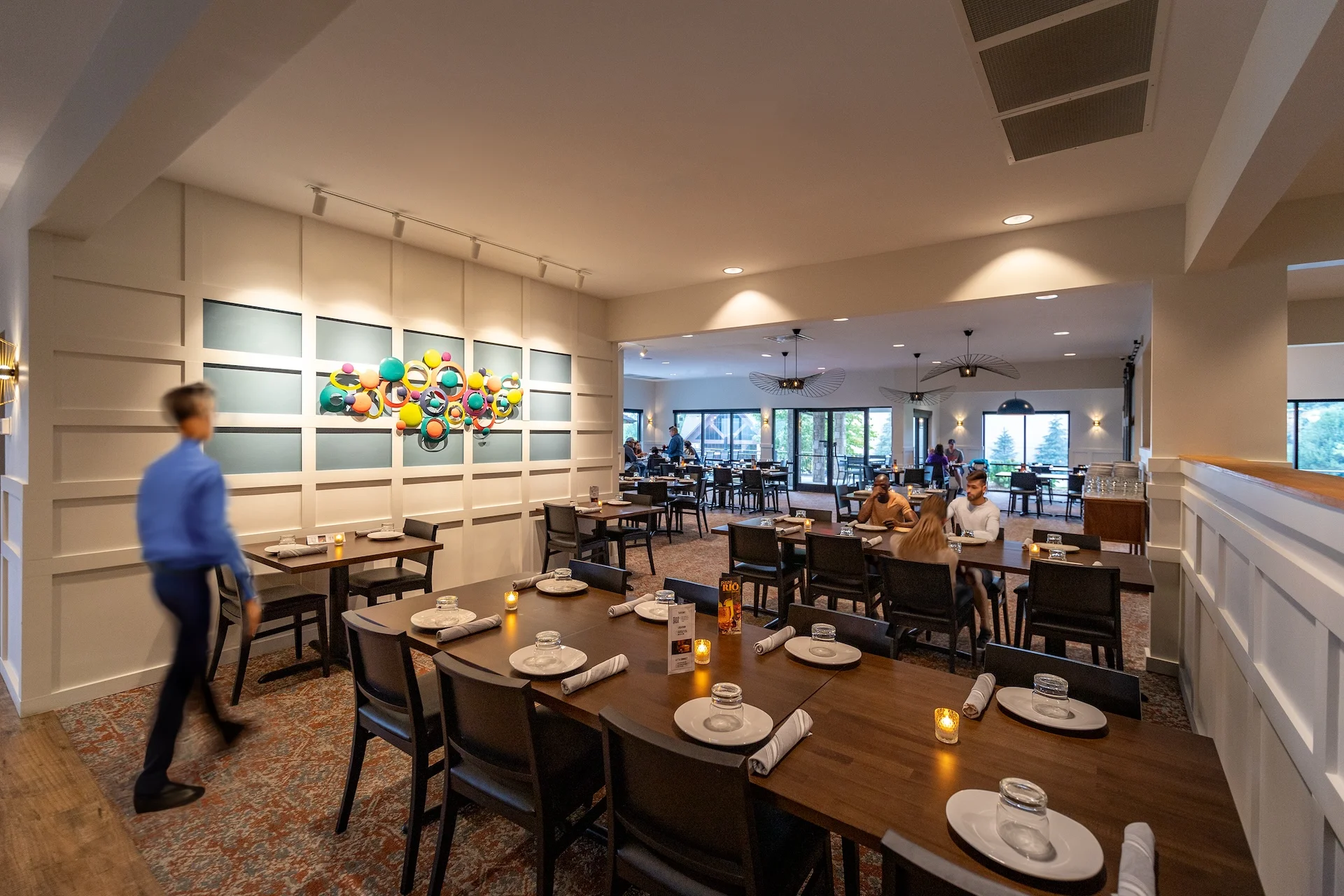 The space was designed to maximize views to the surrounding mountains, incorporate a centralized bar, and create breakout areas for parties both inside and out. Changes in materials help define the main dining area along with semi-private and private dining zones, allowing the layout to support flexibility, flow, and a variety of dining experiences.