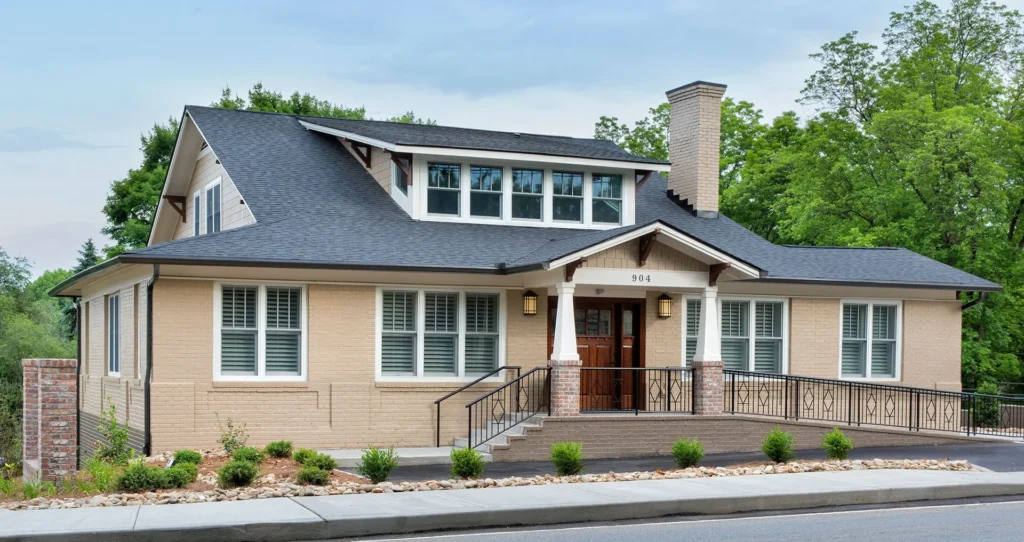 The Shanks Family Dentistry building transformed an abandoned residential structure into a functional dental office. Located near a local high school, the project reimagined an underutilized property as a healthcare space that fits comfortably within its neighborhood setting.