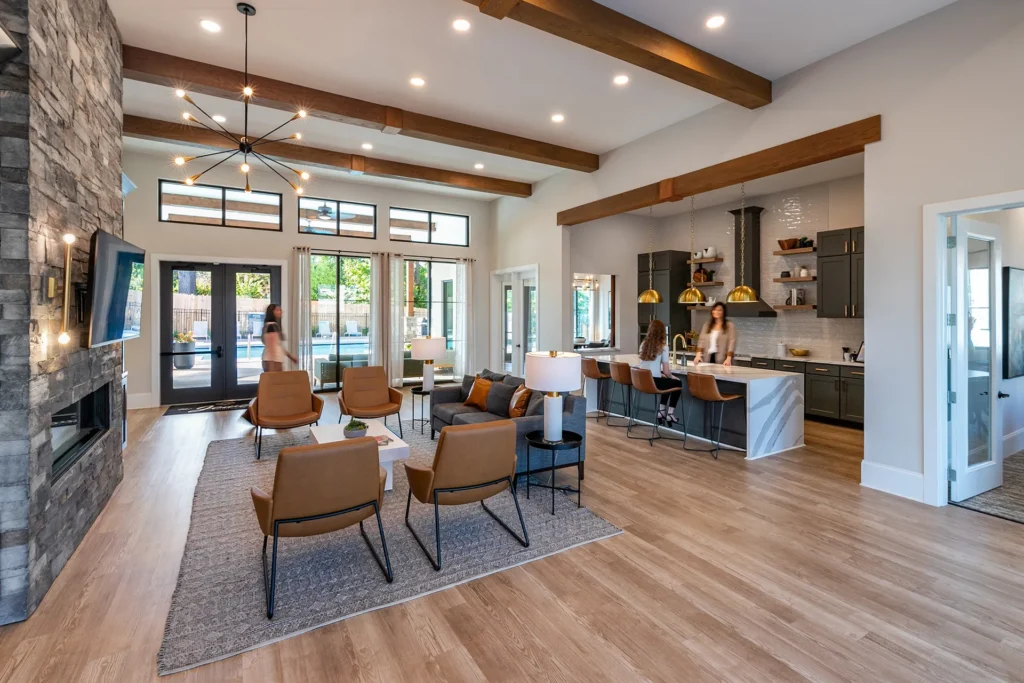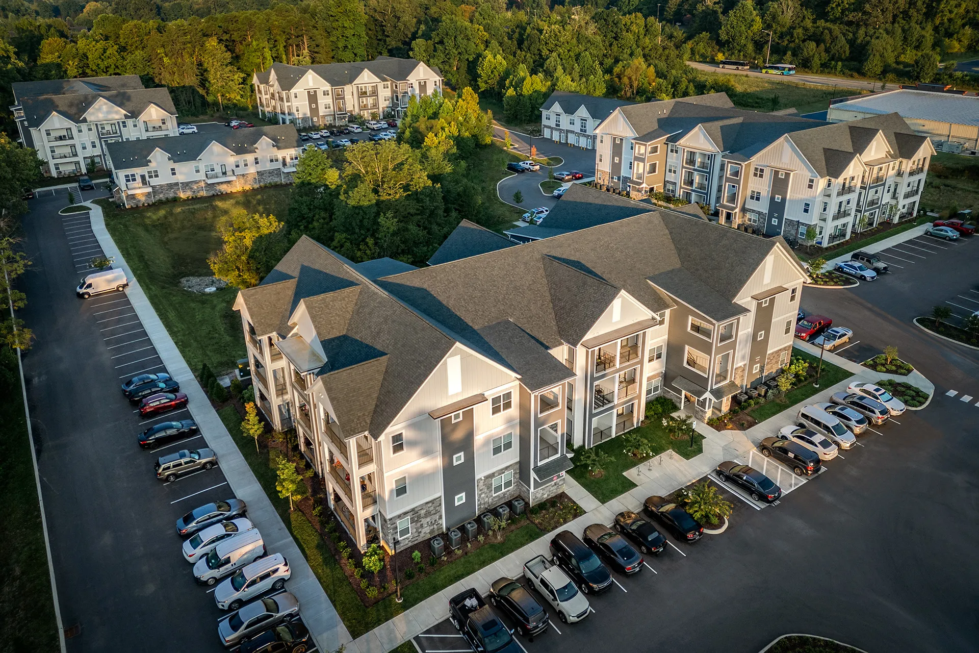That contextual approach informed a site plan conceived as a collection of interconnected living environments rather than a single residential complex. Five garden-style apartment buildings are arranged to define outdoor spaces, encourage walkability, and maintain a consistent human-scale experience throughout the site. Shared amenities, landscaped open spaces, and clear circulation patterns are woven into the layout to foster interaction and support a strong sense of community.
