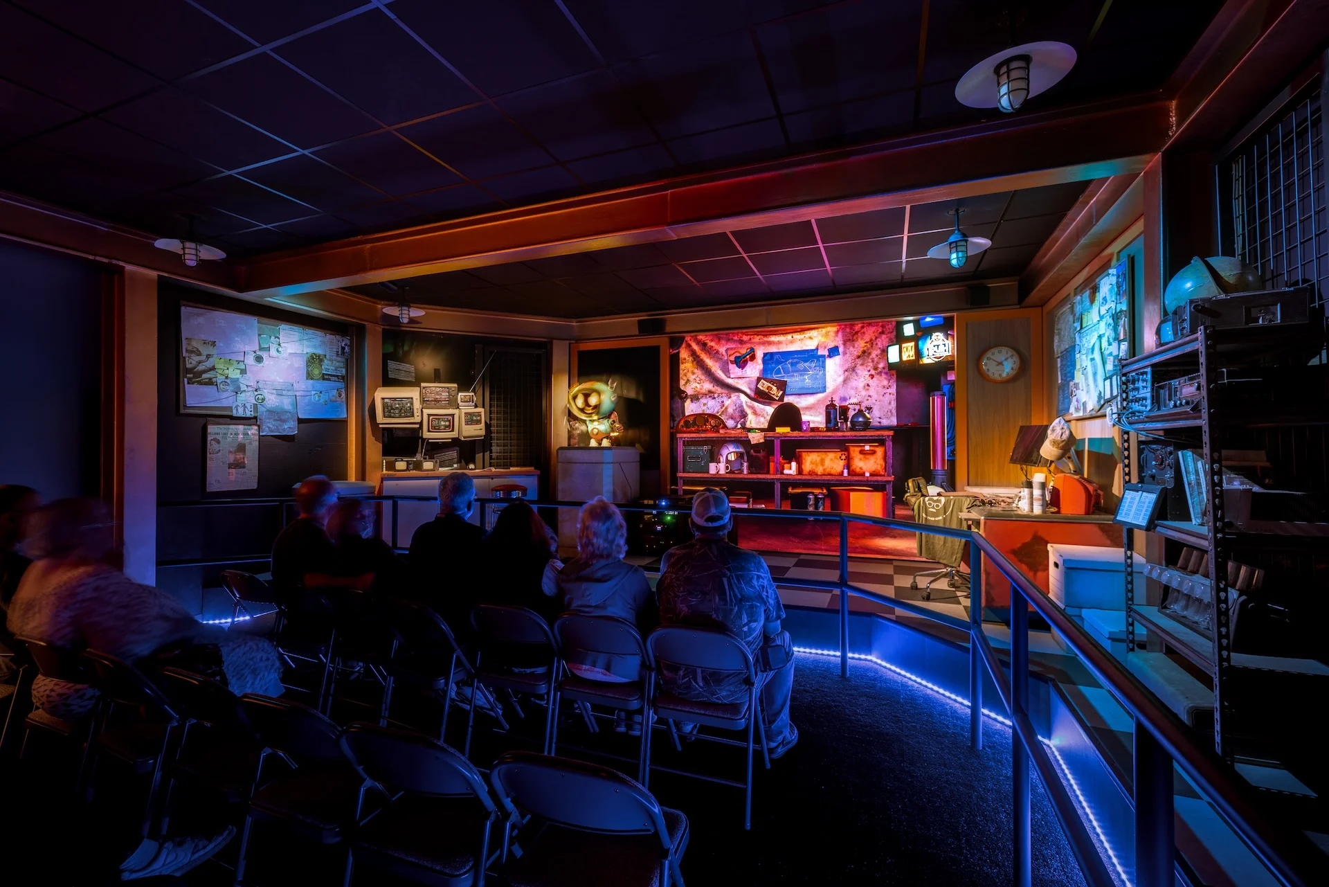 The design was driven by the futuristic theme of the attraction and the need to stand out within Pigeon Forge’s dense entertainment market. Working alongside Kingdom Productions on theming and interior design, the layout supports multiple immersive environments while guiding guests clearly through each stage of the experience.
